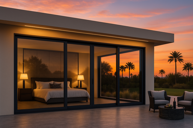 ✓ Expansive Glass Panels – Slim frames and wide glass surfaces bring in natural light and clear views, perfect for modern steel lift and slide doors.